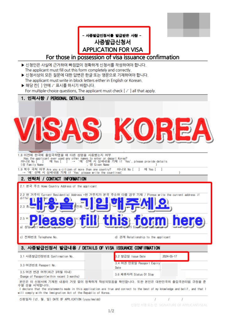 - 2024年6月27日に発行されたため、2024年9月27日までに韓国に入国しなければ査証発給確認書が有効ではありません。